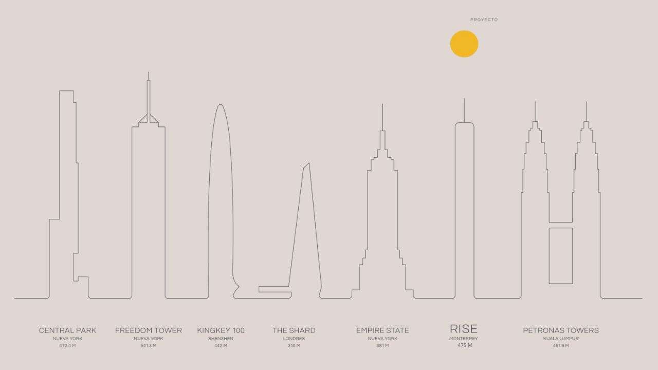 Se estima que RISE sea un ícono en México, con una sorprendente altura de 475m se caracterizará como el edificio más alto de todo Latinoamérica, inclusive estará dentro del top 20 a nivel mundial.